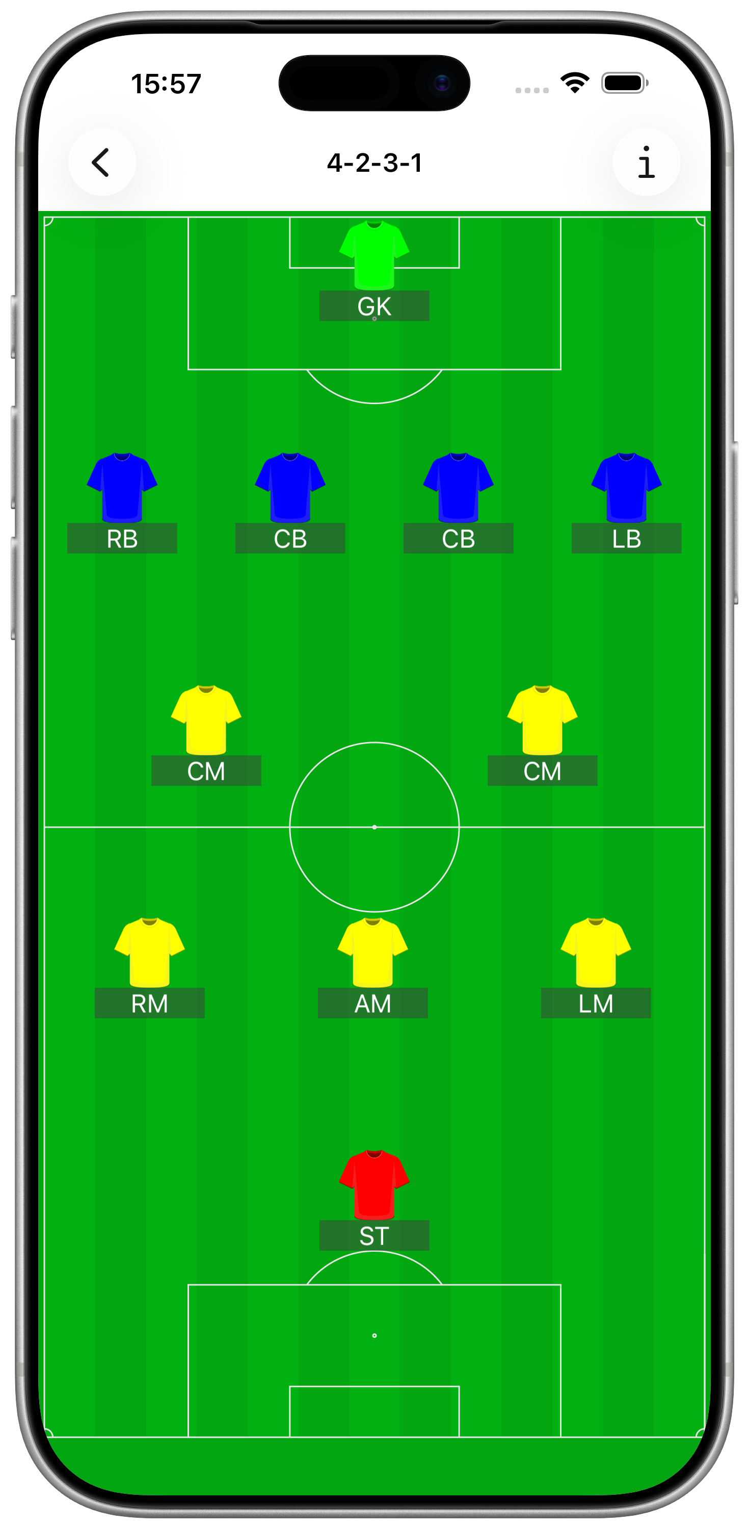 To change for formation tap the Edit button. The outfield players start to jiggle and you can drag them into a different formation. Tap the Done button to complete the formation change.